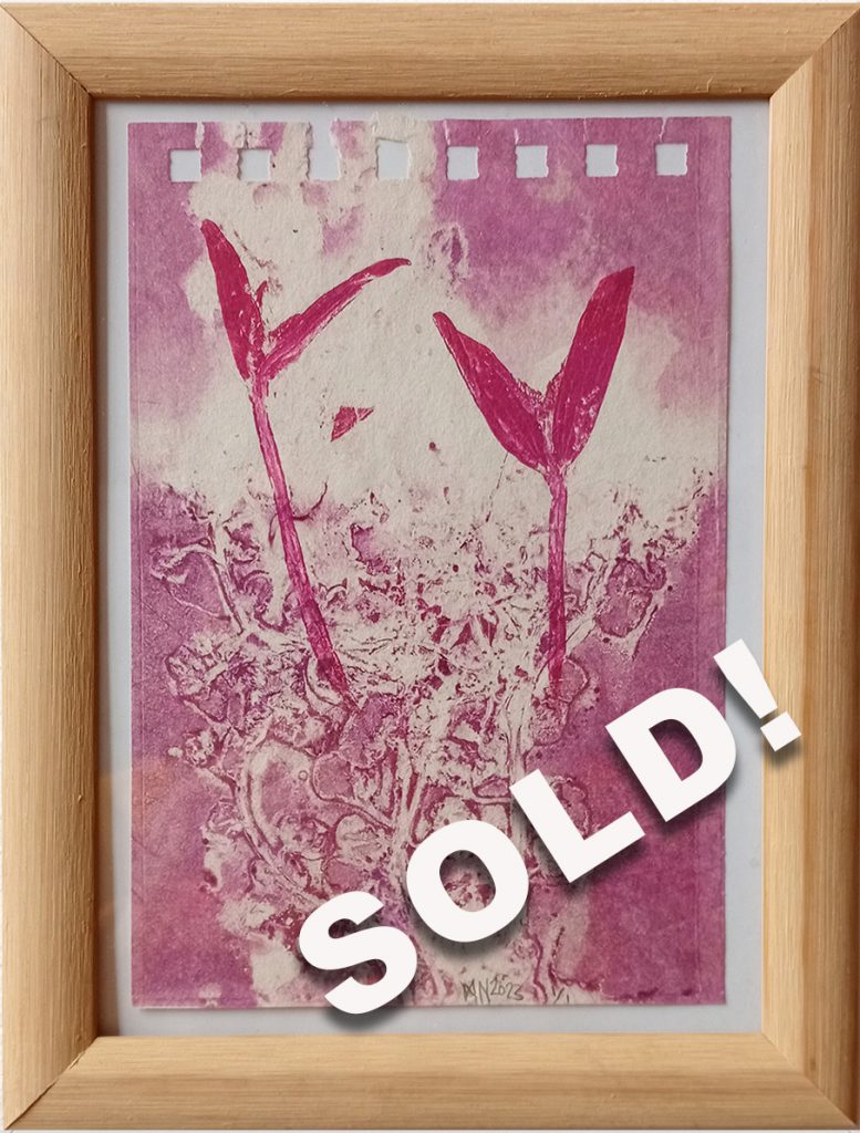 Small monotypes, monoprints, drawings, some etchings, collages and mixed media on paper. All €50,- including frame and shipping within the Netherlands and in Nijmegen I will deliver it. Outside the Netherlands there will be additional shipping costs. Send me a message if you are interested: pmnoort@gmail.com