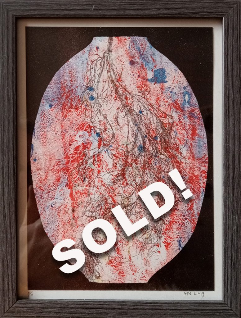 Small monotypes, monoprints, drawings, some etchings, collages and mixed media on paper. All €50,- including frame and shipping within the Netherlands and in Nijmegen I will deliver it. Outside the Netherlands there will be additional shipping costs. Send me a message if you are interested: pmnoort@gmail.com